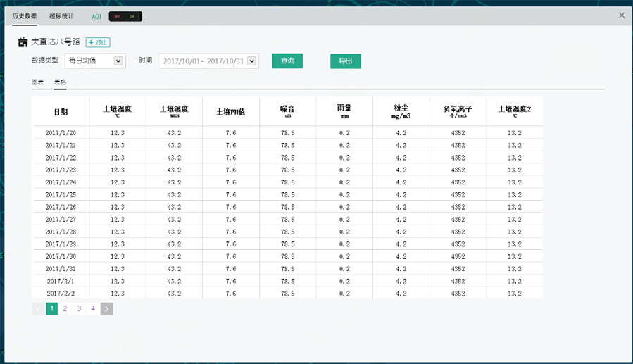 1. 能夠以表格的形式展現歷史數據。可以不同的顆粒程度查看某個時間段內的歷史數據。針對查詢出的歷史表格還可以做導出操作。