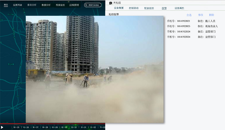 2.可以查看揚塵檢測點位配套的實時監控和歷史監測。