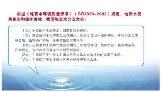 根據(jù)《地表水環(huán)境質(zhì)量標準》(GB3838-2002)規(guī)定,地面水使用目的和保護目標,我國地表水分五大類: