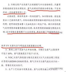2)又如,2018年11月1日,長沙市環保局發布“關于印發《長沙市包裝印刷行業揮發性有機物整治規范》”,指出“廢氣處理采用用高效治理措施,不宜采用單一活性炭吸附工藝”、“在污染總量規模不大且濃度低、周邊環境不明剛的前提下,采用UV光催化法與吸收技術配套聯合處理”