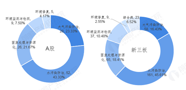 目前,從2018年A股和新三板環保企業細分領域數量分布情況看,水污染防治、大氣污染防治和固廢處理與資源化三大領域企業數量較多,而環境監測與檢測、環境修復等領域企業數量較少。
