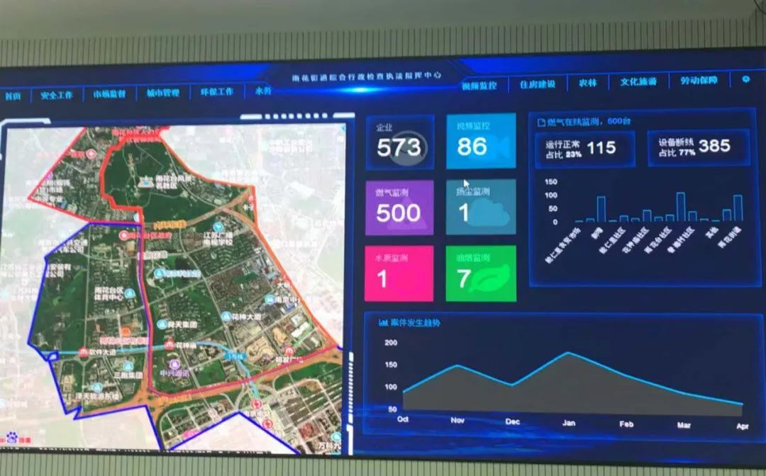 餐飲油煙在線監測已進入‘3.0時代’。”雨花臺生態環境局副局長李正龍指著有一面墻大小的餐飲油煙在線監控智慧平臺介紹說。雨花臺生態環境局依托本區軟件產業優勢,開發油煙在線智慧監控系統軟件,通過“查、核、督、處、服”形成監管閉環。