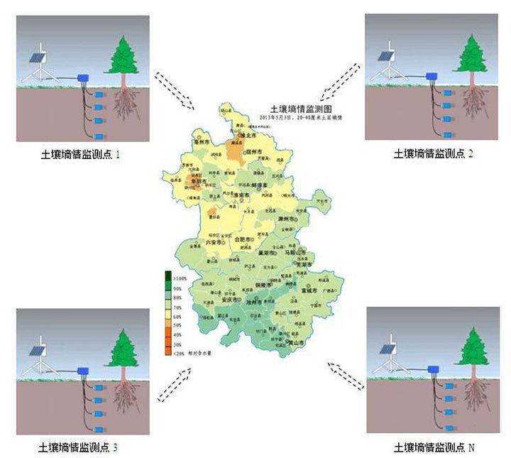 土壤墑情監(jiān)測(cè)系統(tǒng)能夠全面、科學(xué)、真實(shí)地反映被監(jiān)測(cè)區(qū)的土壤變化,可及時(shí)、準(zhǔn)確地提供各監(jiān)測(cè)點(diǎn)的土壤墑情狀況,為減災(zāi)抗旱提供了重要的基礎(chǔ)信息。