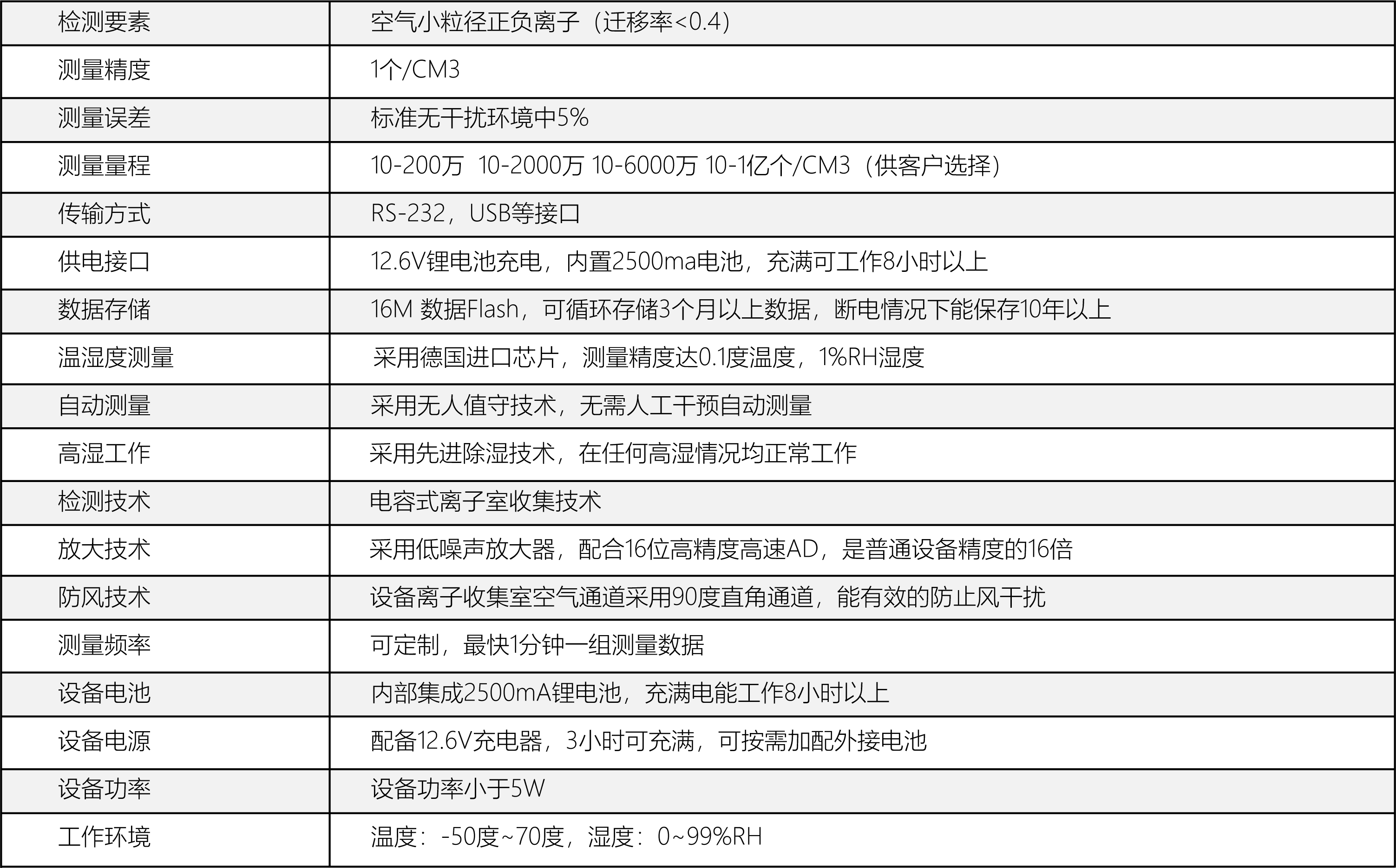 ZK-NIP負離子檢測儀可用于測量各種空氣離子發生器所產生的各種正、負極性的大、中、小離子及溫濕度。具有精確小巧、測量準確、靈敏度高、環境適應能力強,能長期在野外不間斷工作的特點,設備采用電容式吸入法檢測空氣中的負離子,本儀器美觀大方,采用高級鋁合金機殼,美觀耐用。