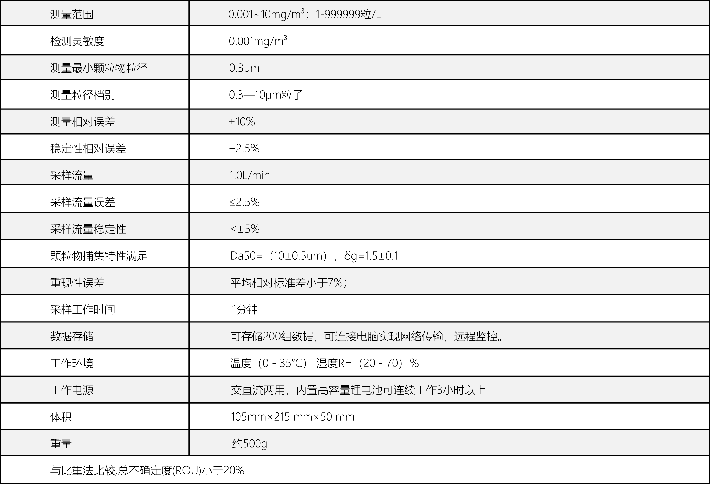 儀器可同時測量粉塵質量濃度和大于粉塵粒子數濃度,能存儲200組數據,數據查詢方便,并可配接電腦,為衛生防疫、環境監測等部門測量可吸入粉塵(PM2.5)以及直接觀察大氣塵埃濃度連續變化規律的儀器。