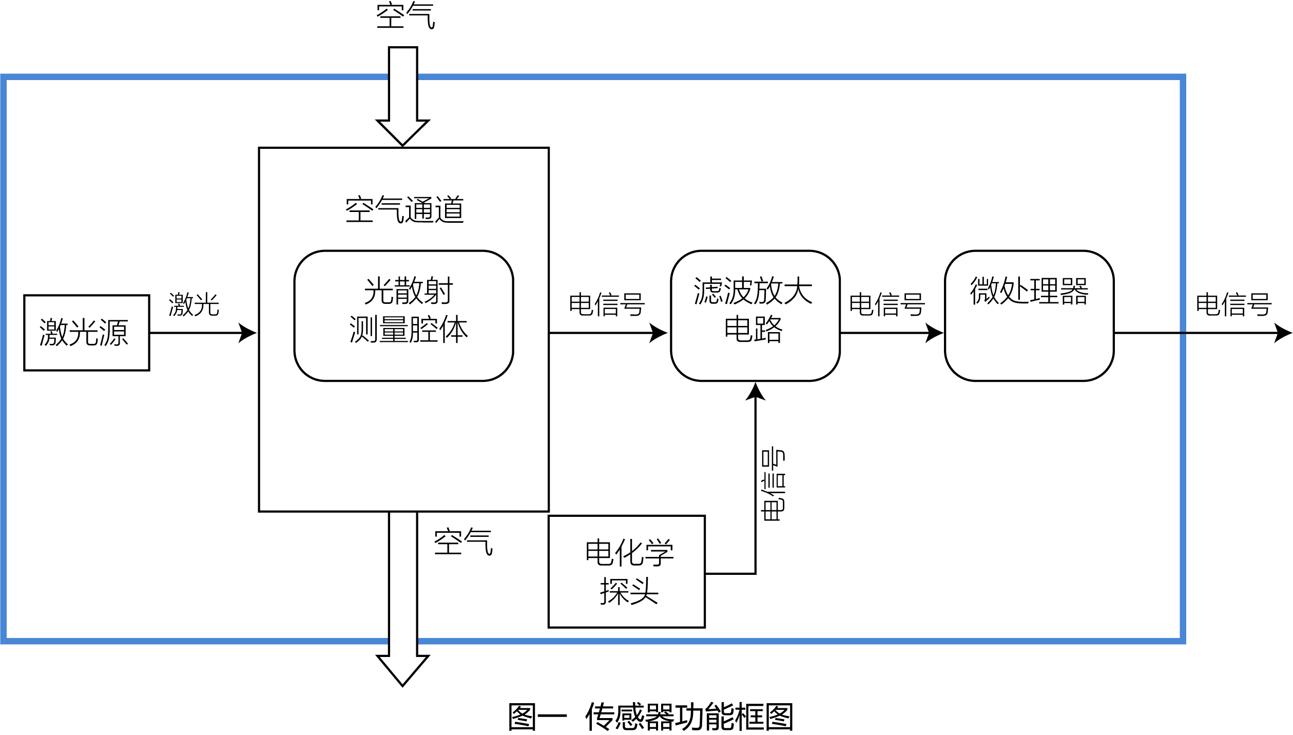 本傳感器采用激光散射原理。即令激光照射在空氣中的懸浮物顆粒上產(chǎn)生散射,同時在某一特定角度收集散射光,得到散射光隨時間變化的曲線,進(jìn)而微處理器利用米氏(MIE)理論的算法,得出顆粒物的等效粒徑及單位體積內(nèi)不同粒徑的顆粒物數(shù)量,傳感器各功能部分分框圖如圖一所示。