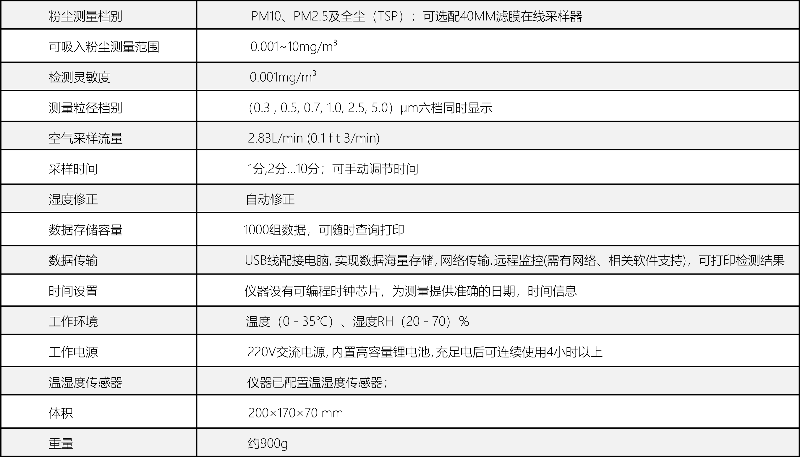 PC-6D(便攜臺式)粉塵檢測儀,激光粉塵儀根據我國衛生行業標準:“公共場所空氣中可吸入顆粒物(PM10)測定方法 光散射法”(WS/T 206-2001)設計。